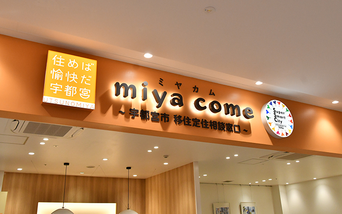 市移住定住相談窓口「miya come」は、JR宇都宮駅東口直結の複合施設「ウツノミヤテラス」の3階にあり、仕事や住まい、子育て・教育環境などから、移住・定住に係る支援制度の相談まで、専門の相談員がワンストップで対応します。